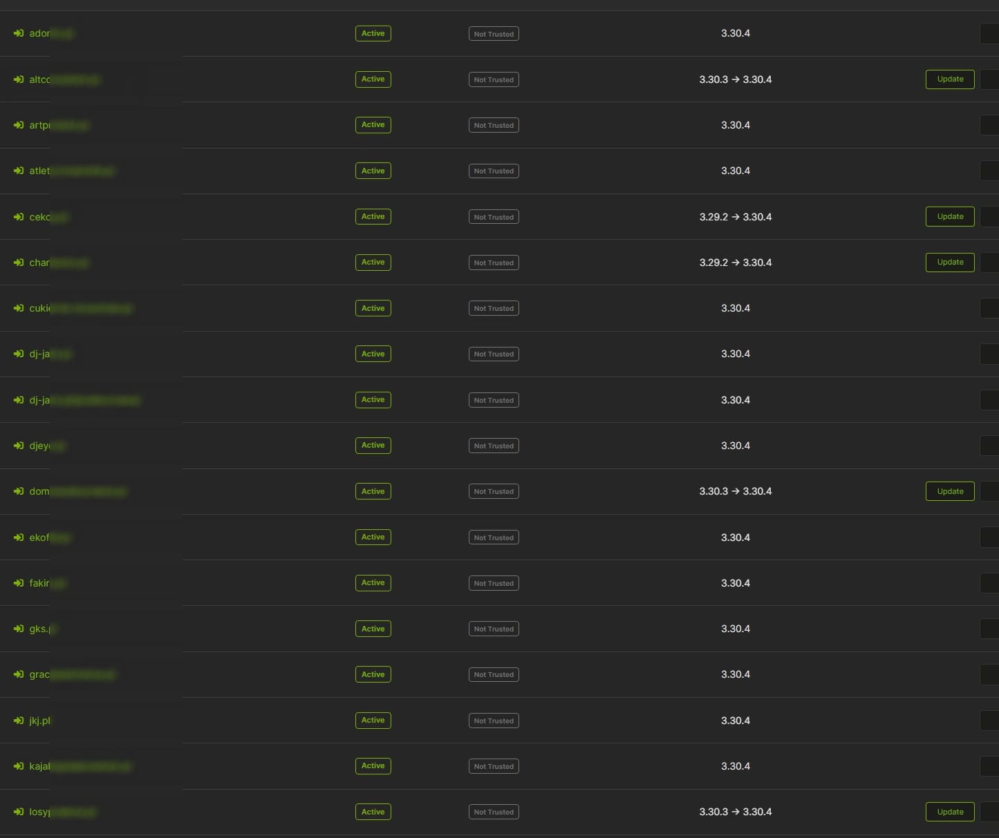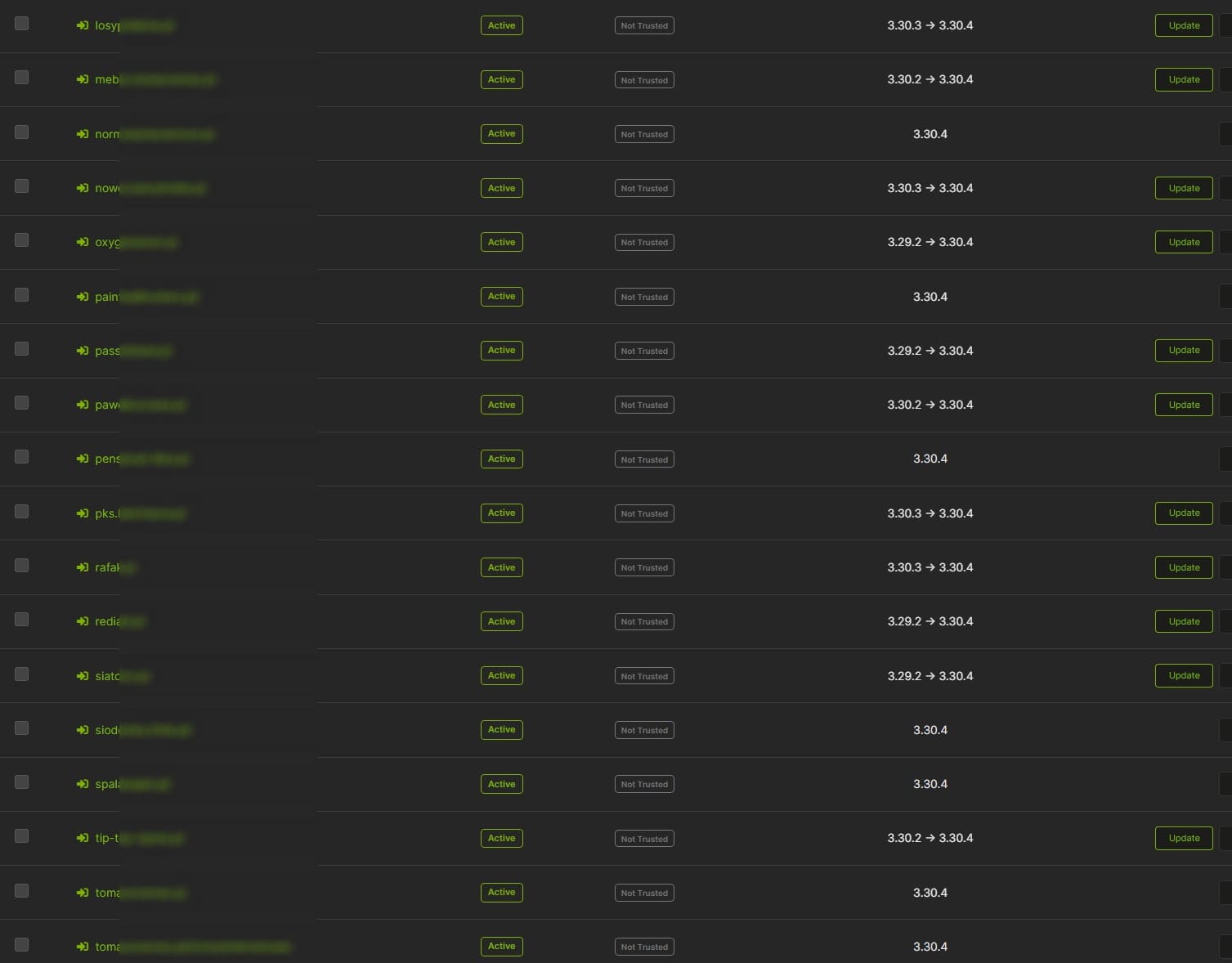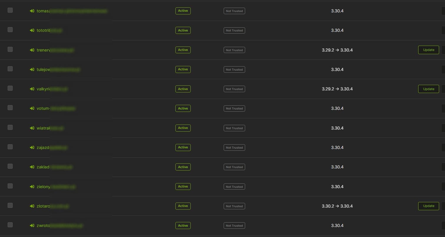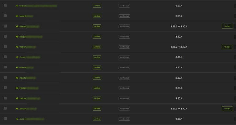 Przejdźmy do stron, które monitorujemy. Od razu ważna uwaga – monitorujemy również te, które wcześniej stworzyliśmy lub serwisowaliśmy. Jeśli nie są aktualizowane, to zazwyczaj dlatego, że nie mamy zawartych umów z ich właścicielami. Nie znaczy to jednak, że spuściliśmy je z oka – doskonale widzimy, które strony wymagają pilnej interwencji.