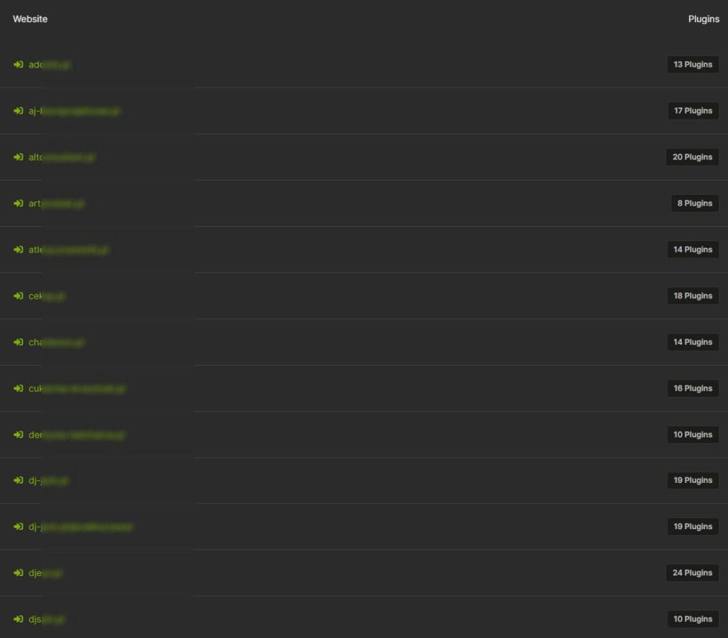 A to jest tylko jedna wtyczka !!!! Strony ich używają średnio około 1. W tym celu zaglądamy na nasze strony, aby zobaczyć, ile tych wtyczek  posiadają strony, na tym screenie – od 8 do 24 wtyczek: