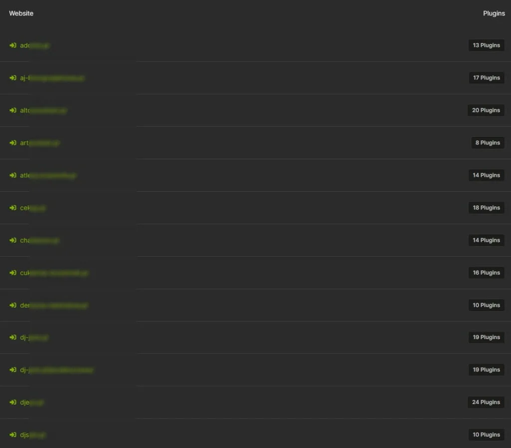 A to jest tylko jedna wtyczka !!!! Strony ich używają średnio około 1. W tym celu zaglądamy na nasze strony, aby zobaczyć, ile tych wtyczek posiadają strony, na tym screenie – od 8 do 24 wtyczek: