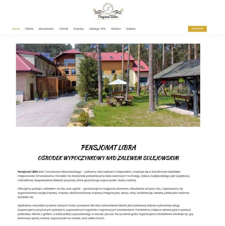 pensjonat-libra.pl-2 pensjonat-libra.pl-3 pensjonat-libra.pl-4 pensjonat-libra.pl-5Strona Pensjonatu położonego nad Zalewem Sulejowskim. Wizytówka Google. Strona pozycjonowana pod kątem SEOposiada wysoką pozycję – noclegi Zalew Sulejowski:https://www.google.com/search?q=noclegi+zalew+Sulejowski&oq=noclegi+zalew+Sulejowski Witrynahttps://pensjonat-libra.pl2020-2025, FIRMOWE, STRONY WWWPodobne pracePKS BełchatówKomunikacja samochodowaEkoFollBaseny, oczka wodne.Losy PolakówFestiwal Filmowy PoprzedniNastępny