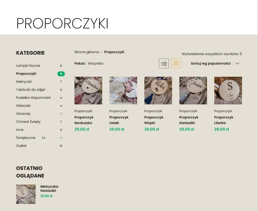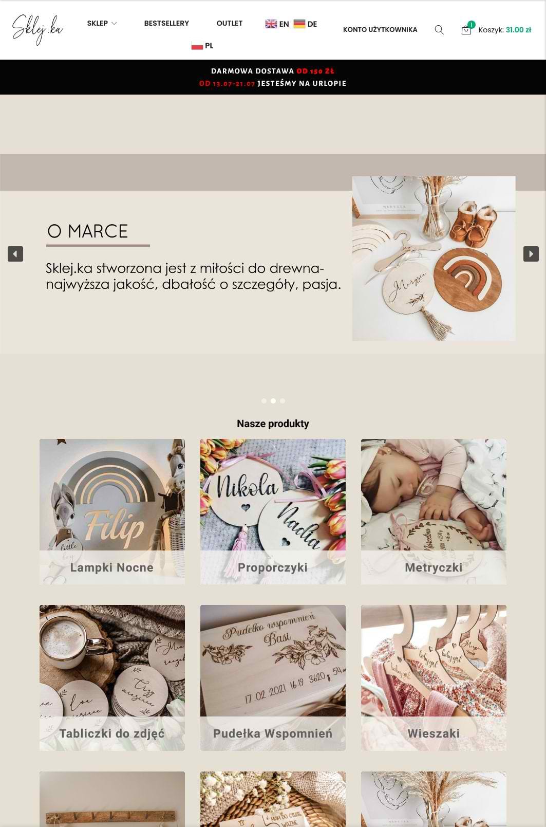 Sklep zawiera wiele niestandardowych elementów zaprojektowanych na życzenie Klienta. Jest tutaj dość złożona architektura filtrów (wiele kolorów dla róznych kategorii produktów).