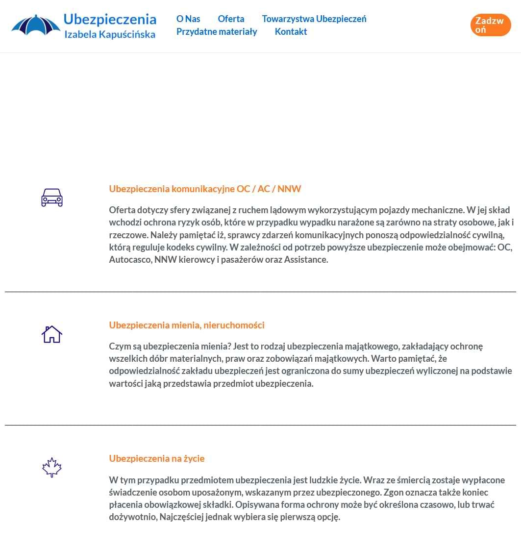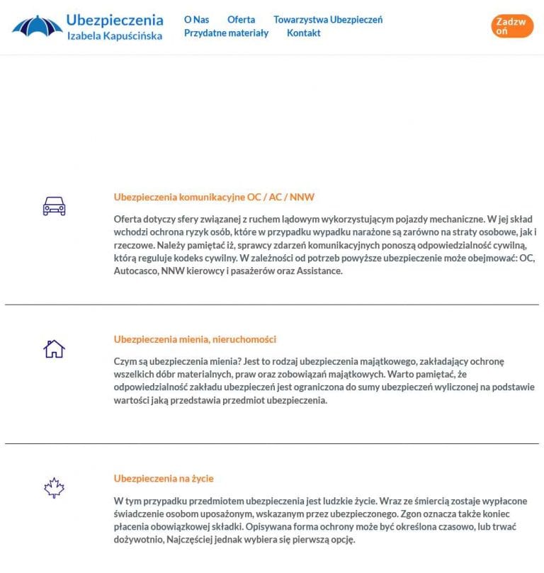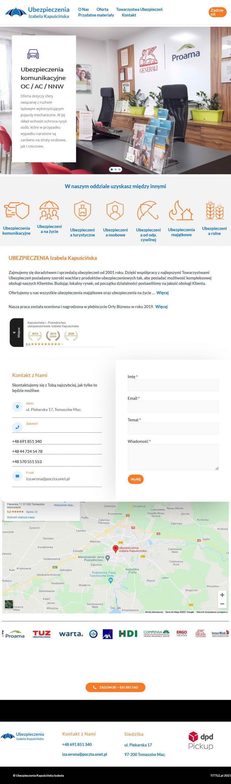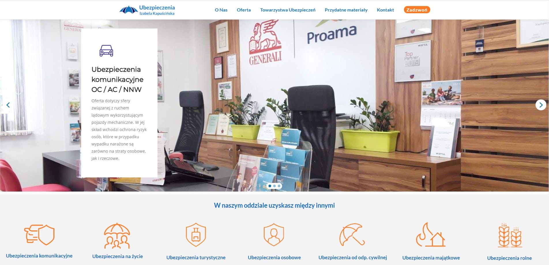 Zrzut ekranu 2021-09-14 022024 ubezpieczenia-kapuscinska 02Strona stworzona od podstaw wg. indywidualnego projektu z ołówkiem w ręku.Wykonano fotografie biura.Czas realizacji od pierwszego spotkania do finalizacji – 1 miesiąc. Witrynahttps://ubezpieczenia-kapuscinska.pl2020-2025, STRONY WWW, USŁUGIPodobne pracePKS BełchatówKomunikacja samochodowaEkoFollBaseny, oczka wodne.Losy PolakówFestiwal Filmowy PoprzedniNastępny