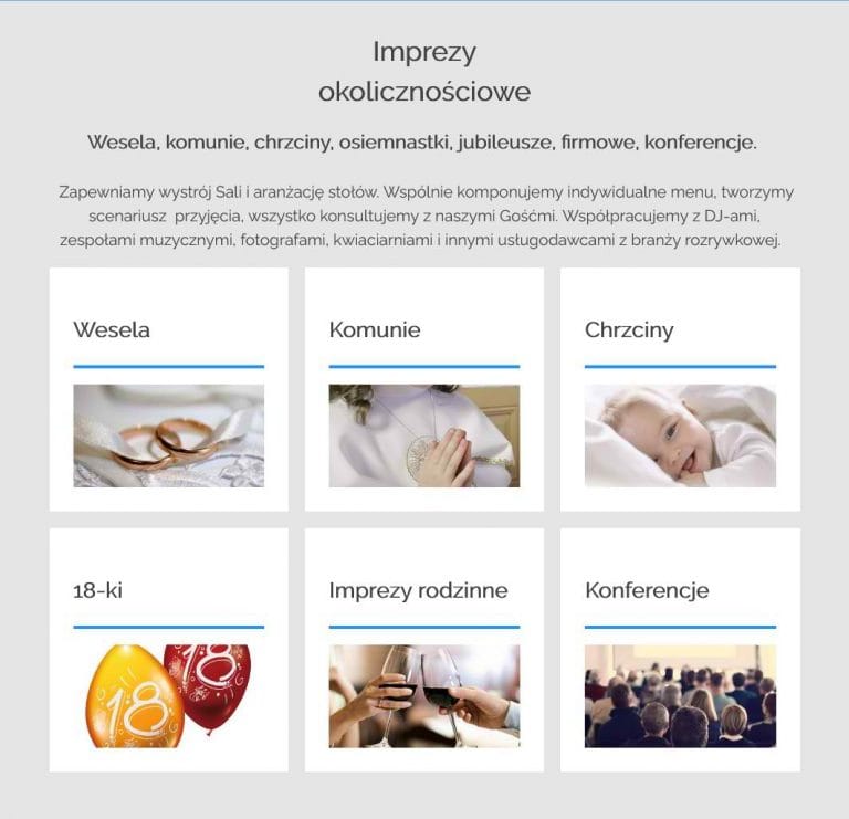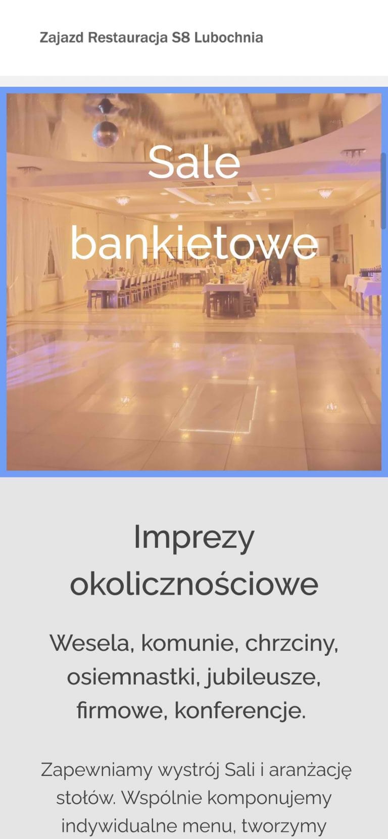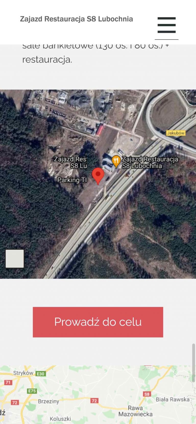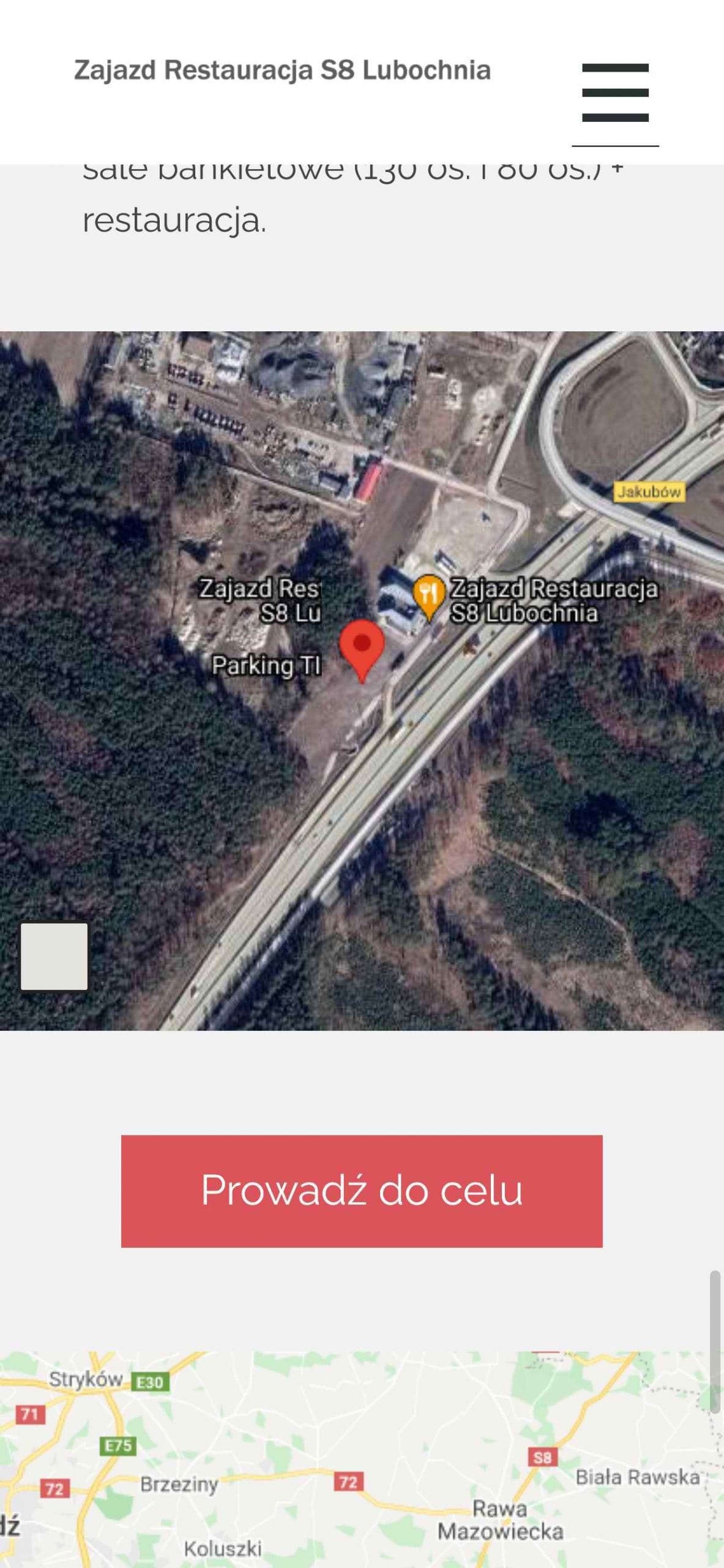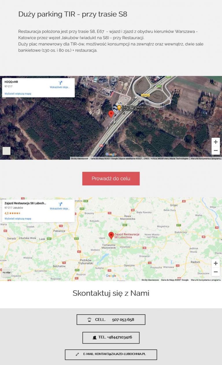 Głównym założeniem przy projektowaniu strony była potrzeba jej  dobrej widoczności w Google oraz możliwość szybkiego dotarcia do Restauracji z pozycji kierującego pojazdem po trasie S8. Dlatego na stronie znajdują się dwie mapy w różnej skali a strona zbudowana jest w wersjo „OnePage” (jedna strona), co pozwala na latwą nawigację na urządzeniach mobilnych, poprzez jej przewijanie w dół. Przycisk Zadzwoń ułatwia szybki kontakt telefoniczny dzieki akcji natychmiastowego przełaczenia do trybu dzwonienia.